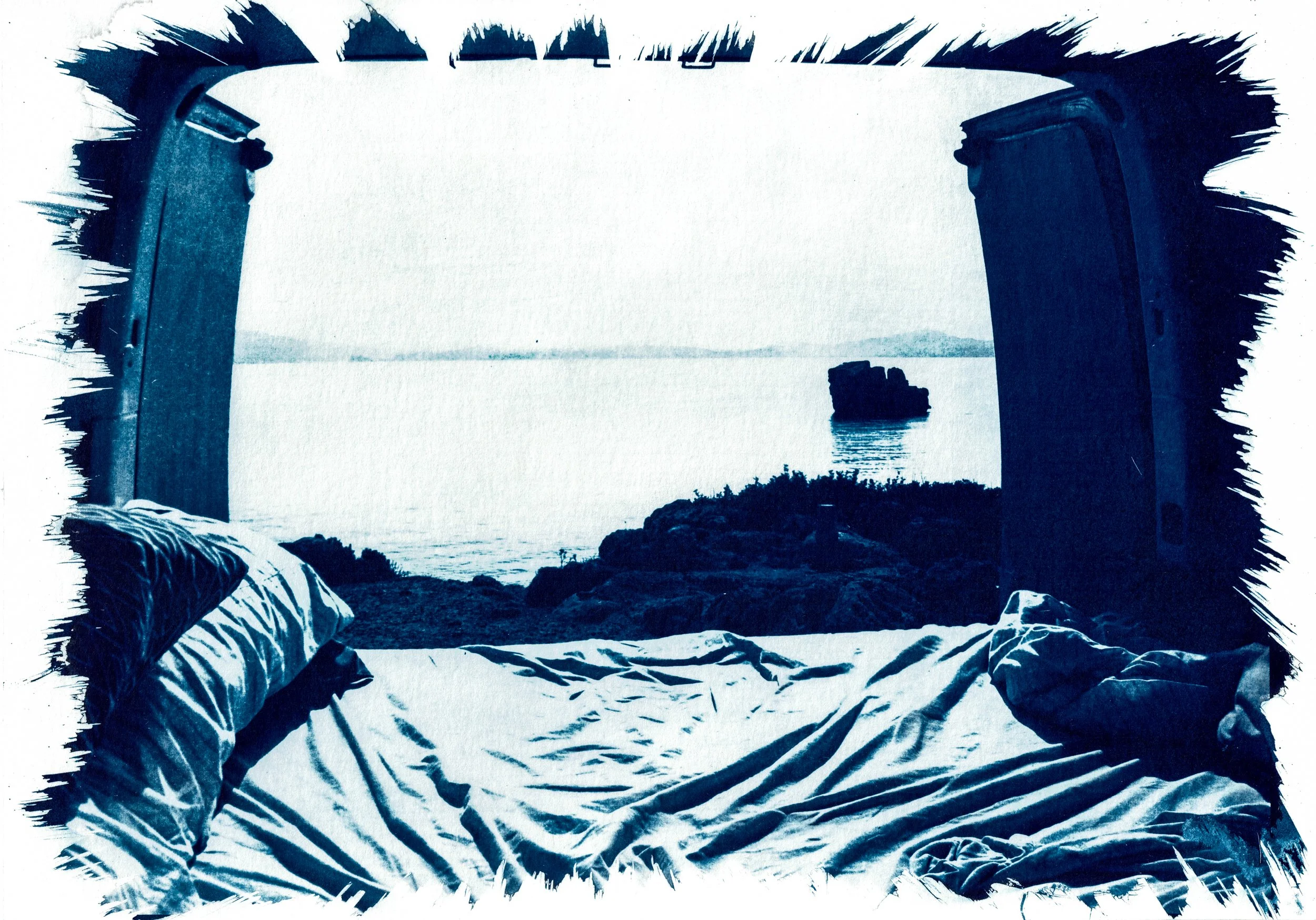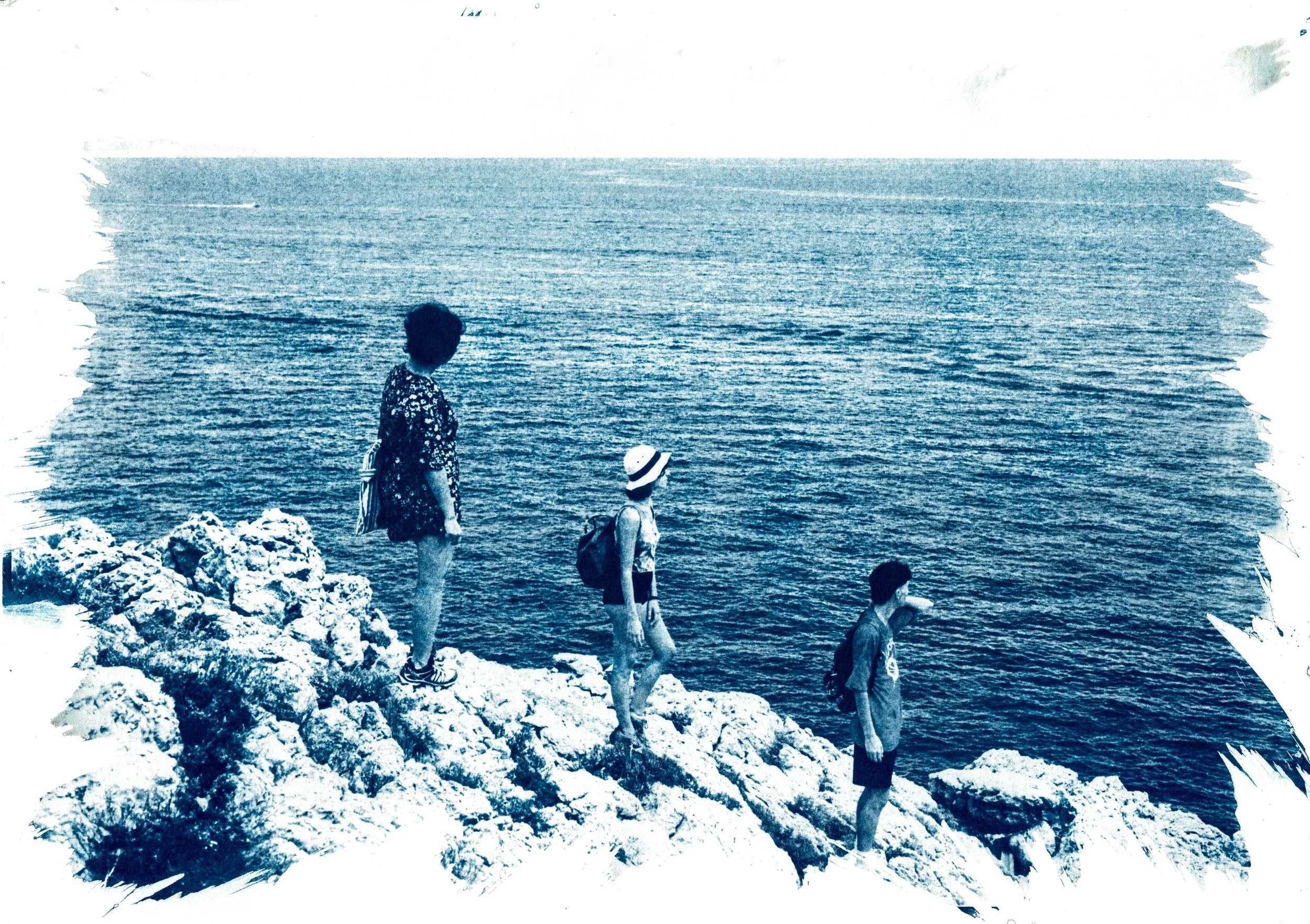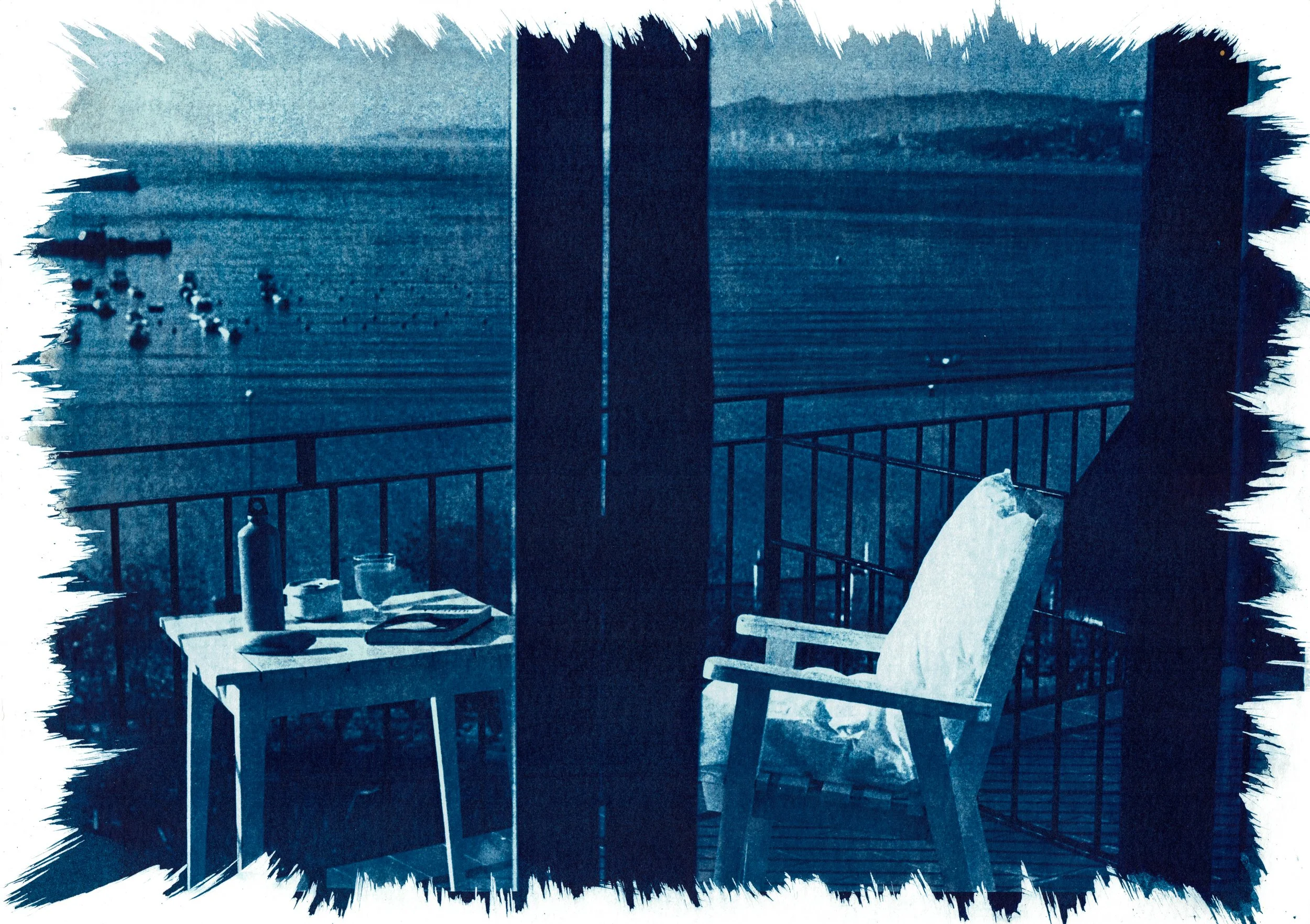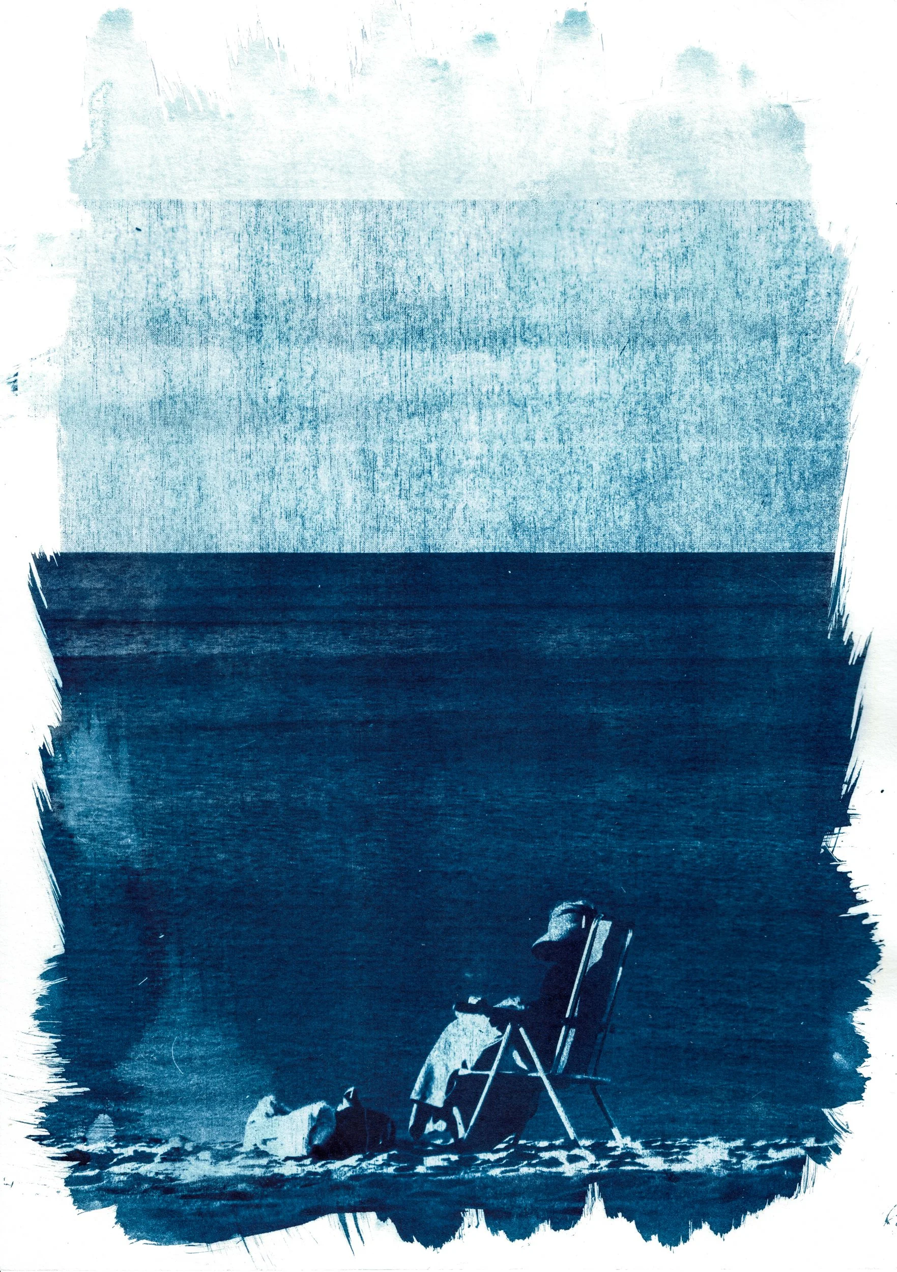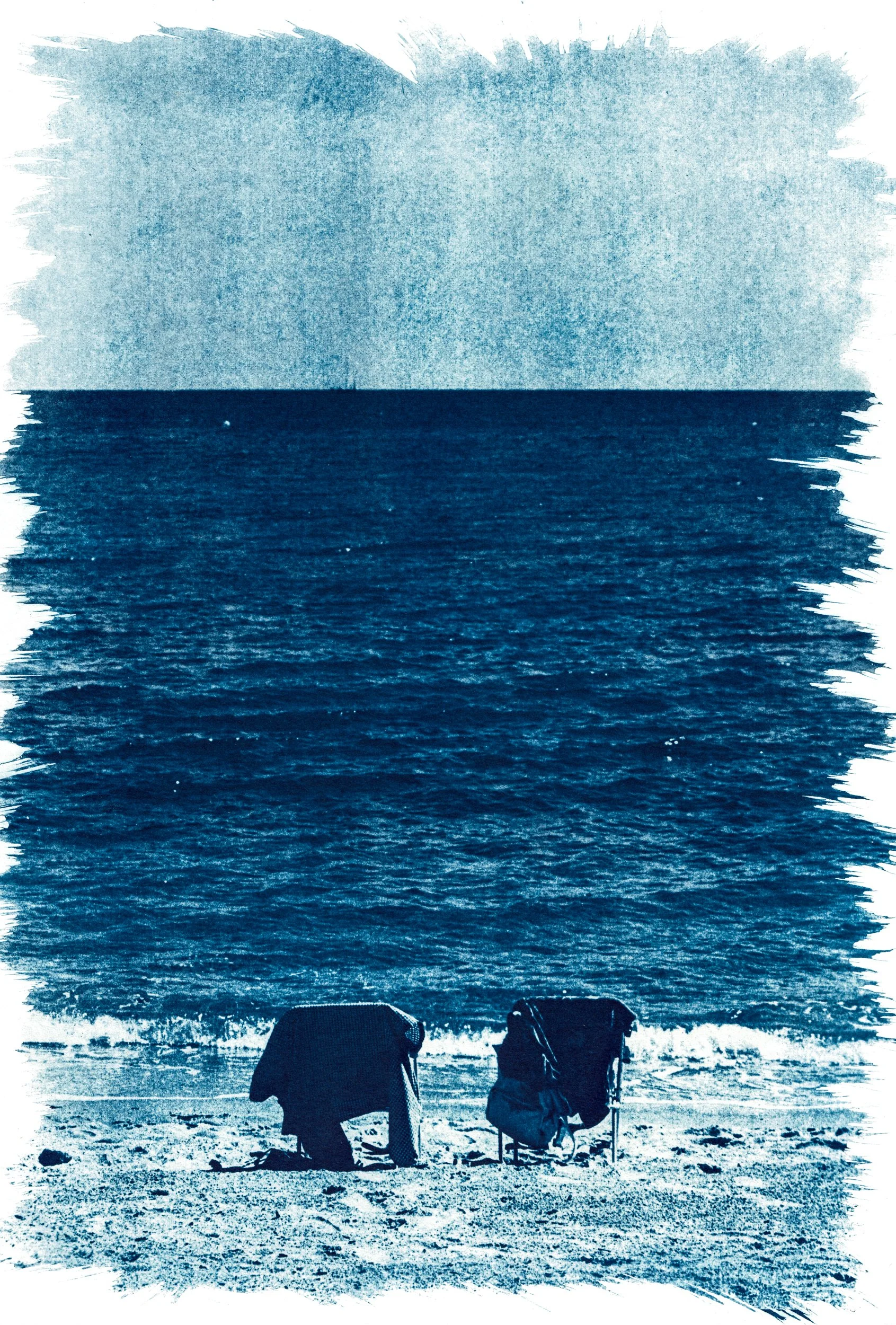 The blue of cyanotypes invites us to pause before the sea, to breathe the salty life and love that we are, and to find a moment of contemplation, of exploring and embracing solitude. This solitude is a timeless refuge, a state of awareness that allows us to feel connected to our own essential being, and to the nature of which we are a part; it is a chair that welcomes us and that we share with ourselves, with Mother Earth, with beings — human and non-human — who cross our path or accompany us